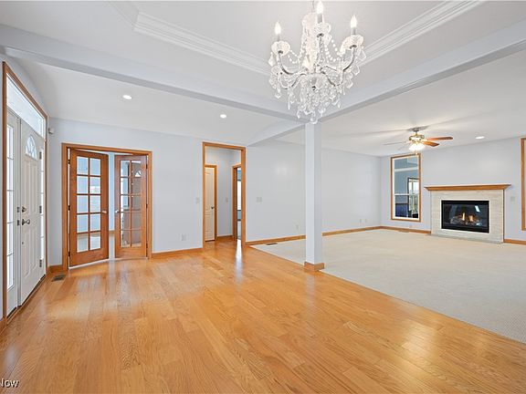 Beautiful 2,691 sq ft brick & vinyl ranch built in 2015, set on a peaceful 2-acre lot {200x436) in the desirable Crockers Landing subdivision—an enclave of stately homes, each on 2+ acres. This quality-built home offers comfort, style, and exceptional spaces for everyday living or large gatherings. The welcoming foyer immediately shows off the craftsmanship throughout. The first-floor Great Room features a cozy gas fireplace and opens to the cherry-cabinet kitchen with Corian countertops, wood-laminate hardwood flooring, and all appliances included. From the eat-in area, step into the spacious three-season sunroom with gas heater—perfect for relaxing year-round. The sunroom leads to a recently stained, oversized deck with pergola and easy access to the private backyard. A convenient outdoor half bath is available during gatherings. The first floor was thoughtfully designed to accommodate a handicapped person, offering added versatility. A true highlight is the finished lower level—perfect for entertaining or multi-generational use. This expansive space includes a large family room with contemporary wall-mounted electric fireplace, a full second kitchen with abundant cabinetry and appliances, a full bathroom, a possible office/bedroom, and outstanding storage. Additional features include a storage shed just steps from the deck and a spacious 3-car attached garage with hot and cold running water and ample storage options. This home offers 3 full baths and 2 half baths, a newly replaced hot water tank, and worry-free septic maintenance. The septic system was inspected and pumped on 7/01/25 and passed. The low $200/year HOA fee covers the required annual septic inspection. Located in attractive Columbia Station (Columbia Township), residents enjoy rural charm paired with convenient access to the Turnpike, 1-71, shopping, and city amenities. Wide-open landscapes, natural beauty, and a strong