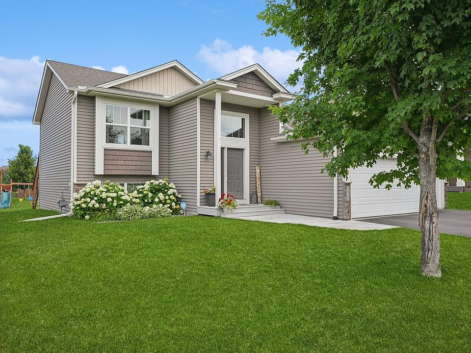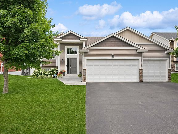 A well kept beautifully landscaped split-level home located conveniently right off Hanson Blvd & Bunker Lake! Minutes from shopping, parks, and schools. Upon entering the upper level w/vaulted ceilings, you will find the open concept living room that opens up to the dining room and kitchen. Off the dining room you walk out to a deck and backyard. Kitchen has additional seating at the breakfast bar with gorgeous cabinets and backsplash. 3 bedrooms upstairs that offer natural lighting, including master with walk-in closet and a walk- through bath. Lower level has large living area with additional bedroom and 3/4 bath.