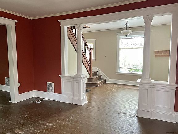 Great opportunity to bring this home back to it's original beauty. Needs exterior work and full bath updates. The inside has lot's of charm with wood floors throughout, crown molding, trim, pillars, large built in cabinet w/drawers, 3 decorative windows, french door to family room, updated half bath and the kitchen has new floor, counter and sink, furnace 1 yr old, replacement windows approx 10 yrs, roof 21 yrs with 40 yr shingles. Nice sized rooms, full basement with exterior/bilco and inside entrances, full walk up attic ready to be finished. Property backs to park land and has 83 ft frontage. Sold as is, conv loan or cash only due to exterior work needed. A true diamond in the rough! Number on house is 1929.