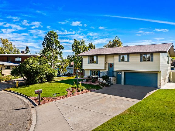 Beautifully updated 3 bedroom 2 bathroom Fox Farm split level. All new exterior stone work, landscaping and accent paint completed in 2025. The remodeled kitchen features quartz counter tops, a custom island, new flooring, newer appliances and built-in water filter. New light fixtures throughout the home. Gas fireplaces in both the main and lower levels. Fully fenced backyard with elevated composite deck off of the dining area and two storage sheds on concrete pad. Two car garage, sprinkler system and A/C. Newer Washer and Dryer included.