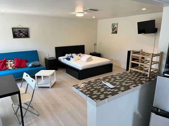 This cozy furnished and clean studio (guest house / in-law suite) is located in the quite historical Mid City, literally one step from Culver City.
