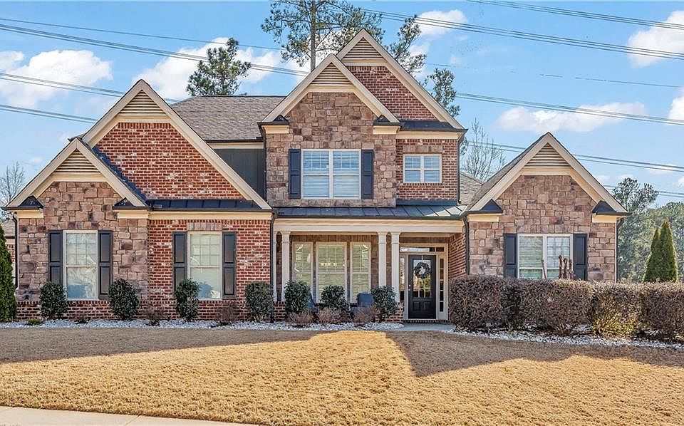Immaculate executive home beautifully situated on a lovely corner lot in West Cobb’s coveted Heatherbrooke neighborhood. Welcome your guests from the rocking chair front porch into the spacious foyer of this beautifully appointed and well thought out floorplan with hardwood flooring and crown molding. The main level boasts, a separate dining room with wainscoting and coffered ceiling. Spacious family room with access to the covered game day patio with outdoor fireplace perfect for enjoying your morning coffee or entertaining family and friends. A gorgeous chefs kitchen with granite countertops, tile backsplash, double ovens, gas cooktop, walk-in pantry, and huge center island overlooking the cozy fireside keeping room with built-ins. Beautiful private owner's suite with sitting area, trey ceiling, and ensuite offering a spa-like atmosphere including a soaking tub, separate oversized tile shower, double vanities, tile flooring, and large closet. Additionally on the main level is a second bedroom/guest suite with full bath, spacious laundry room with built-in cabinets, and a powder room. The second floor flaunts 3 large bedrooms all with direct access to bathrooms, spacious walk-in closets, and ceiling fans. A fabulous media room/6th bedroom with multiple closets, and two lovely full bathrooms with tile flooring. This MUST SEE home is conveniently located in desirable Cobb County School District, near restaurants, grocery and retail establishments, parks, and the West Cobb YMCA. Welcome Home!