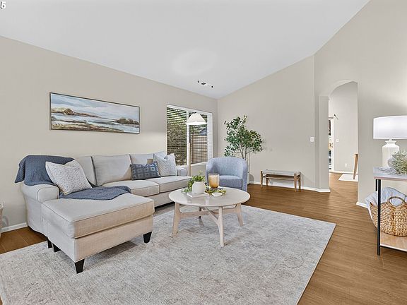 Immaculate and move-in ready single-level home in a prime Eugene location! Recent updates include new interior paint, luxury vinyl plank flooring, and a new roof and water heater (2022). This light-filled home features vaulted ceilings, arched hallways, and an open-concept kitchen, dining, and living space with direct access to a covered back deck—perfect for entertaining. Cozy gas fireplace in the family room. Spacious bedrooms with double closets; owner's bed offers bathroom with dual sinks, and a tub/shower combo. Enjoy the beautifully landscaped yard with lush grass, raised garden beds, a tool shed, and both front and back covered patios. Located just minutes from Albertsons, restaurants great schools (Meadow View & Willamette), parks, and popular local restaurants. A truly turnkey home in top-notch condition! Open House Sunday, 10/5/25 @ 2-4PM.