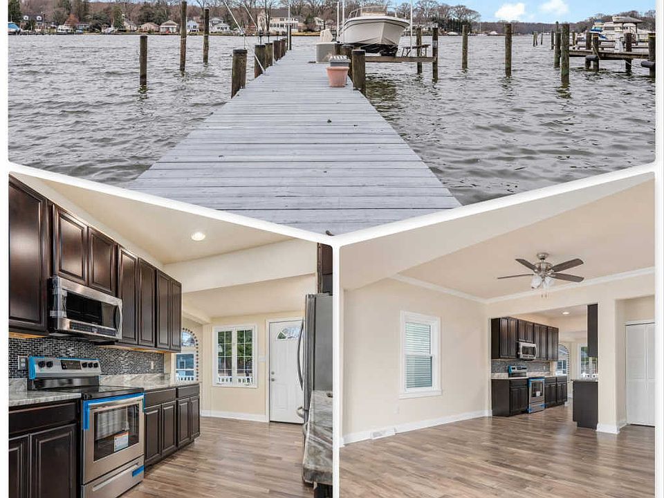 WATER FRONT home with 50+ bulk headed deep water waterfront with amazing views from the waterfront deck, yard and pier. Open concept living area with new kitchen, bathroom, flooring and much more. wake up and entertain to an amazing view just steps away from your private dock with electric boat lift. Detached garage with plenty of room for parking. the property continues on the other side of Locust St as well. Located ins Poplar Ridge not far from the end of the road!!