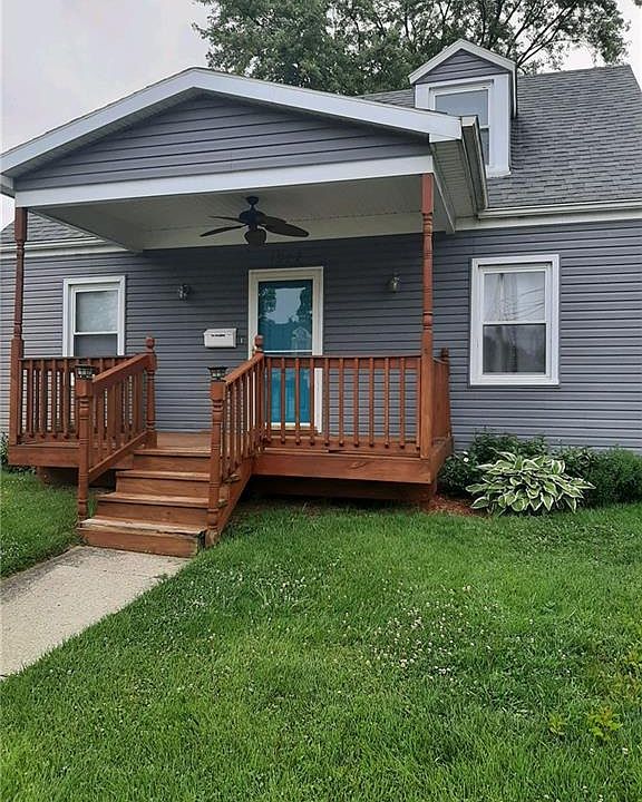 Ready to move? This Cape Cod could be yours! Beautiful inviting front deck with ceiling fan. Natural woodwork throughout. Recent improvements include kitchen flooring, dining room, remodeled bath, ceiling fans. Improvements made between 08-10 roof, furnace, air conditioning, siding, entry doors, front deck. Other improvements include vinyl replacement windows. Professionally cleaned inside. Unfinished dry basement. Detached garage. Fenced yard. Everything you need is here!