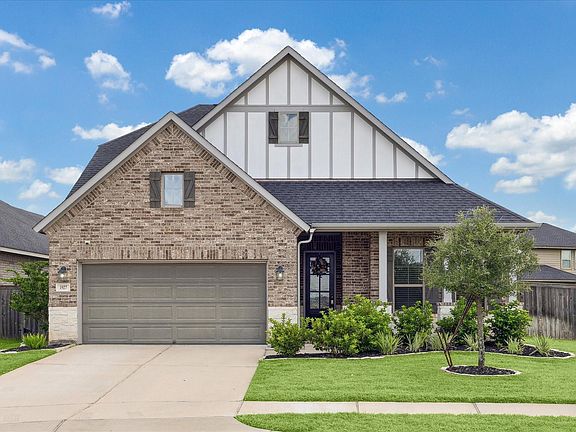 Beautiful home on a spacious lot in sought-after Young Ranch. Featuring 3 bedrooms, 2 full and 2 half baths, this home offers an inviting porch entry, vaulted ceilings, 8' interior doors, and abundant natural light. The home includes a private study with French doors and a fabulous, large bonus floor upstairs with game room and half bath. The chef’s kitchen features upgraded granite counters, shaker-style cabinetry, stainless steel appliances, and a generous island, flowing into the dining area and living room with custom ceiling detail. The primary suite offers a spa-like bath with soaking tub, separate shower, dual vanities, and a generous walk-in closet. Two secondary bedrooms share a full bath. Outdoor living - a covered patio with gas BBQ outlet and large backyard. Community amenities feature resort-style pools, clubhouse, fitness center, and trails. Zoned to the highly rated Fulshear High School. Conveniently located near new retail development along the Texas Heritage Parkway.