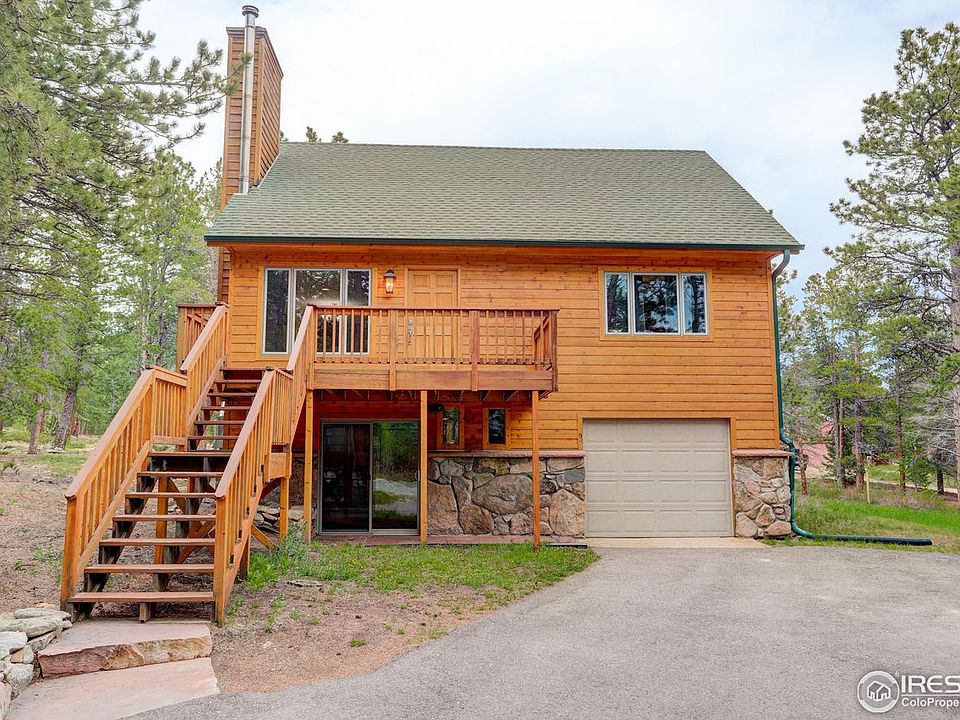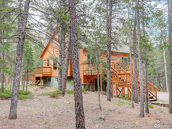 Set back from Ridge Rd, in a mature pine forest, this home offers tons of privacy, yet is just a 5 minute drive to downtown Nederland, 15 minutes to Eldora and or the Hessie trailhead, 25 minutes down the hill to Boulder and the school bus stops right in front of the property. Outside, enjoy a flat, sunny usable lot with custom retaining wall made from local moss rock, 2 large, well maintained decks, perfect for relaxing and or entertaining, a paved driveway and close access to neighborhood trails/national forest. Inside the home offers, a very functional bright and open floor plan. The main floor features expansive wood flooring, open living/dining/kitchen area w/wood fireplace and half bath and primary bedroom w/new carpet/paint, walk-in closet and 5 piece bathroom. Upstairs you will find 2 additional bedrooms and a full bath. Downstairs, enjoy the family room w/new carpet/paint, a large wood fireplace, Sliding glass doors and half bath. An oversized 1 car attached garage with work bench area finish off the home. This home is move-in ready and has it all!