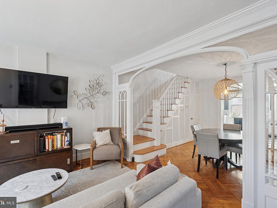 Wonderful Passyunk home with tons of original detail. Enter through a welcoming vestibule with classic tile and glass transoms. Step into a stunning living room featuring tasteful archways, beautiful woodwork, great glass details, and inlaid hardwood floors. Large and sunny kitchen. Lovely private patio perfect for outdoor dining and relaxing. Upstairs you'll find two bedrooms with good closet space, and a nicely sized hall bath with tasteful marble flooring, subway tile, and linen closet. Unfinished basement with laundry and plenty of storage space. Fabulous location on a quiet, low traffic block in the heart of East Passyunk. Just footsteps to countless fabulous restaurants and shops, Bok building, and so much more. Commuting is easy with easy access to Broad Street Line and multiple bus lines. Don't miss this fantastic home. Schedule your showing today!