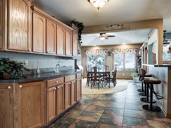 Walk into this inviting 4 bedroom ranch with full exposure into the newer remodeled kitchen with tons of Aristocraft cabinets and additional coffee bar. Dining room leads into the cozy family room with windows overlooking the fenced back yard and raised deck. Living room has a Liberty wood burner and hardwood floors under carpet. Newer Pella windows throughout, furnace with Aprilaire 2005, newer roof 2015 and soffit, fascia and gutters. Lower level has 4th bedroom with huge closet, bath, rec area and plenty of storage, plus walk out to the partially covered concrete patio. Garage is heated and insulated. County taxes. Great Home!!