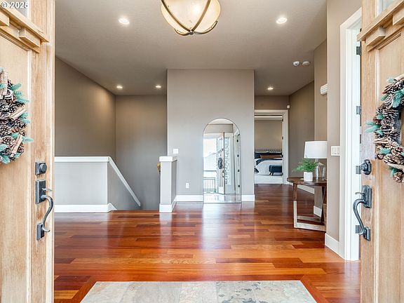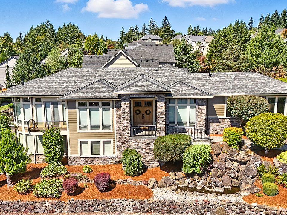 Welcome to 180 views capturing Mt. Hood, and Columbia River in this 3 bedroom custom home with primary on main. This home features a chef's kitchen with granite slab, gas range, double ovens, kitchen island & eating bar. Transom windows enhance the view, or enjoy being outside on 1 of 2 balconies or 2 decks. The downstairs has separate living quarters: 2 bedrooms, a media room with wet bar & theater system. Camas School District! New roof, HVAC, exterior paint, luxury carpet, water heater, and garage floor coating. This home is in prestine condition. Enjoy an outdoor water feature at the entrance of this low maintenance home. A grand entry through double wood doors leads you into the main living with an office, formal dining, and living room, kitchen with eat-in dining, all with soaring ceilings and large windows for a bright space with PNW views. The primary bedroom is also on the main floor with a door out to a private small garden, huge en-suite bathroom with soaking tub and large walk in shower. Down stairs you will find 2 bedrooms, a full bath, a huge theatre room with screen and all equipment, and an additional patio room with its own walk-out covered pation. Tons of storage.