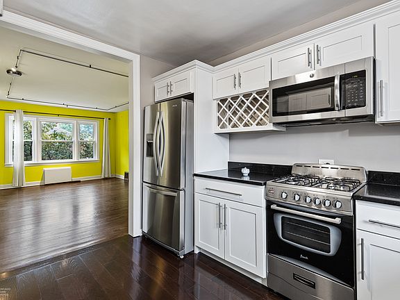 Top Floor 2 Bed Condo with a luxury feel throughout in a park-like setting. Every detail in this unit has been rehabbed to a very high standard, dark wood floors throughout, beautiful tiles, dream kitchen with custom cabinetry, fully remodeled bathroom, newer windows, HVAC and appliances, no detail has been overlooked. Central air conditioning with Ecobee thermostat and private laundry room in basement make this a standout. Closets galore. Exterior parking included. Extensive bonus space in basement for your creative hobbies and/or plenty of storage. Building association is solid, great service, amenities include a swimming pool. Prime Rogers Park Location, minutes from Andersonville, walk to Warren Park, Robert Black Golf Course, Devon and Clark St shopping/restaurants, and Cermak Produce. Great walking neighborhood! A+