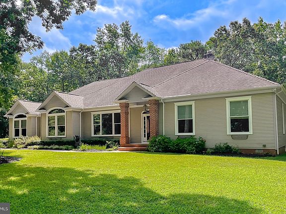 Welcome to 19272 Vanderhoof Lane, an elegant and expansive 4-bedroom, 2.5-bath rambler nestled on 7.845 peaceful acres in beautiful Valley Lee.  With over 3,000 finished square feet, this custom home blends luxury features with a serene, private setting—perfect for those seeking space, comfort, and style. Step inside to soaring 10’ ceilings, 8’ doors, and walls of large windows that flood the home with natural light. Rich hardwood flooring flows throughout the main living areas, while plush new carpet adds comfort to the bedrooms. The gourmet kitchen is a chef’s dream, featuring stainless steel appliances,  quartz countertops, a cooktop, double wall ovens, an island and added countertop space for bar stool seating—ideal for entertaining.  The spacious family room centers around a stunning stone-surround fireplace with a custom mantel, creating a warm, inviting atmosphere. Retreat to the luxurious owner’s suite complete with a spa-like bath: a large tile-surround shower, jetted soaking tub, dual vanities, and a massive walk-in closet with built-ins.  This home is equipped with geothermal heating and cooling (updated w/in the last 7 years), delivering year-round comfort with exceptional energy efficiency.  Enjoy the peace and privacy of your 7.845-acre lot from the comfort of your covered outdoor space or create your own backyard oasis.  A 2-car garage adds convenience, and the single-level layout offers ease of living.   Don’t miss this rare opportunity to own a thoughtfully designed home with high-end finishes in a tranquil setting—just a short drive to area amenities and the water.