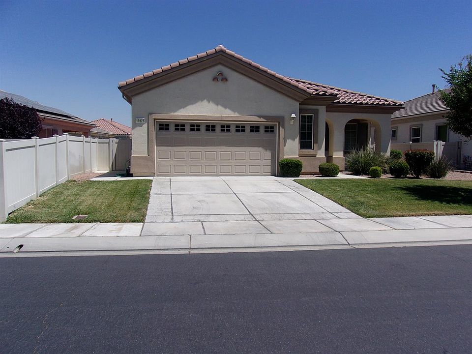 This home located in the Solera Sun City 55+ community has tile/carpet flooring,2 bedrooms,2 baths and bonus room that could be an office or den, indoor laundry, Corian counter tops,all the kitchen appliances, covered patio, and vinyl fencing. Garage is spacious and door is insulated.Mailbox is just footsteps from end of driveway.Huge walk-in master closet. Direct garage access. Backyard rock landscape has all sprinklers installed if new buyer would prefer to put a lawn in later .This property is turnkey with new carpet. The community amenities include a Golf course(seperate fees), 2 club houses with 3 swimming pools, 3 spas, indoor gym, and a gorgeous mountain scenery. Restaurants and shopping located just outside the north exit in the Jess Ranch Plaza.