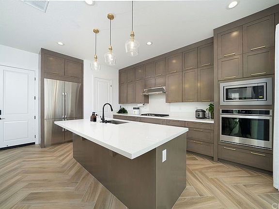 Brand New Construction in 2021.This amazing home feature 5 bedroom and 4 bathroom, situated in a gated community, in the desirable Sierra @Plum Canyon. It's located in the foothills of the Sierra Pelona Mountains with beautiful garden alongside the roads, wide street with amazing mountain views. This home invite you in with high ceilings, open concept living space, huge dream kitchen with large center island, custom built-in refrigerator, stainless steel appliances. Great floor plan with 1 bedroom and a full bathroom downstair. Upstairs feature an en-suite with private bath & walk in closet, dual sinks vanity and huge walk in shower with rain shower head. Awesome loft area that can be an office/library or entertaining. Upstairs also feature 2 good sized bedrooms and 2 full bathroom. Laundry room with sink is also upstairs. This home offered luxurious indoor/outdoor living experience with relaxing mountain views, feel like you're in a resort on vacation all the time. There's no neighbors behind you, just the mountains. Beautiful landscape in front yard, side yard and back yard just finish recently. Walking distance to the 8 Acre Plum Canyon Community Park, close to shopping and restaurants. Upgrade options includes: Fully landscape front yard, side yard, and back yard. - Custom built-in refrigerator - Built-in speakers - Plantation shutters -Engineer Wood/Tile flooring -Leased Solar This home is actually in the city of Santa Clarita, but the postal code shows as Saugus