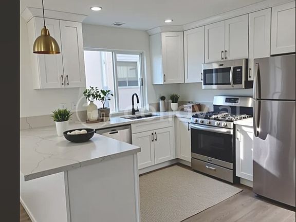 This gorgeous 2 Bed 1 Bath detached ADU features an open-concept design flooded with natural light from south-facing windows. Beautiful laminate floors flow throughout, while recessed lighting creates the perfect ambiance day or night.