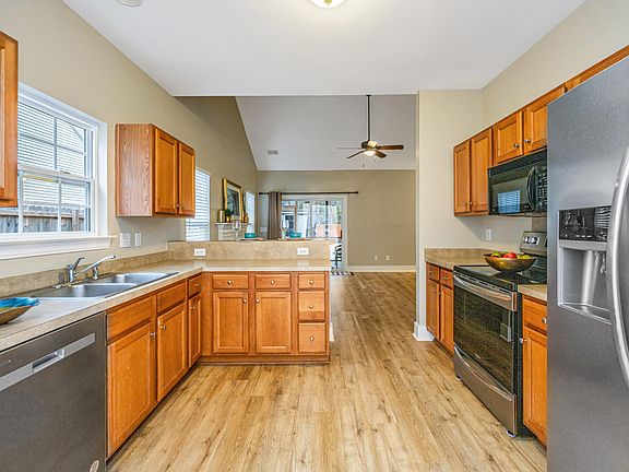 This home is on a quiet cul-de-sac, is a very well maintained 4beds/2baths, open floor plan, vaulted ceilings in the living room and owner suite, a fireplace, separate laundry, a screened porch that over looks a sizable fenced yard with a large storage shed and backs to a wooded lot . The roof, HVAC and flooring are less than 2 years old. The kitchen has stainless appliances (new dishwasher) and a breakfast bar. Plenty of parking + 2 car garage.
