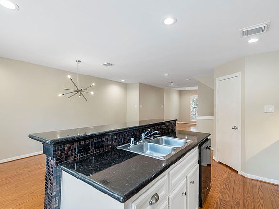 Gated communityContemporary chandelierStainless steel appliancesStylishly updated townhomeNatural lightDesigner tile backsplashStudy nook