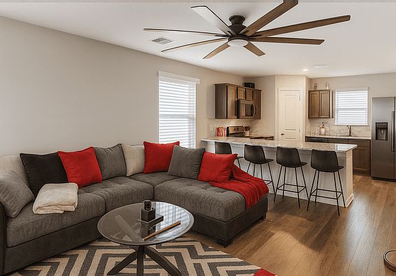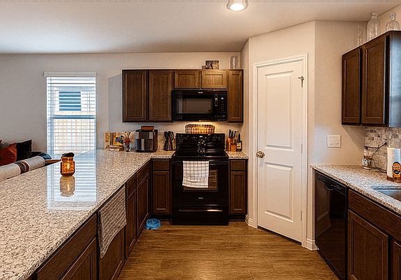 This inviting home offers 1,287 sq. ft. of thoughtfully designed living space featuring 3 bedrooms and 2.5 bathrooms. The open layout includes a spacious living and family room, a gourmet U-shaped kitchen ideal for entertaining, and a versatile upstairs landing perfect for a home office or additional lounge area. The primary suite overlooks the backyard, creating a peaceful retreat, while additional highlights include a utility room, pantry, welcoming front porch, fully fenced-in yard, and a 2-car garage. Appliances include a refrigerator, stove, dishwasher, microwave, washer, and dryer. Enjoy central heating and air conditioning for year-round comfort. Small pets are welcome with a pet fee. Tenant is responsible for all utilities and lawn care.