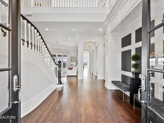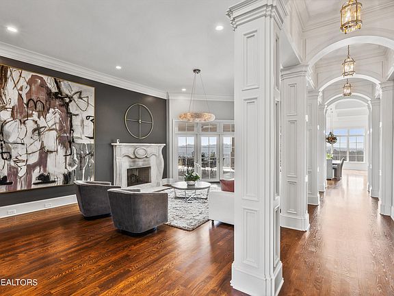 Welcome to a luxurious retreat that captures the essence of East Tennessee's natural beauty and tranquility. This picturesque property combines the majestic mountains, serene waters, and secluded privacy to create an unparalleled living experience. The inviting open floor plan boasts a chef's kitchen with custom cabinets, exquisite tile work, and a layout perfect for entertaining. The main level features a refined study, a spacious master suite with beautifully appointed master bath and a separate bedroom with its own bathroom. Upstairs, discover four additional suites with updated baths, a generous bonus room, and a unique walk-up crow's nest for panoramic views. The basement level offers a versatile gathering room, a wine cellar, a convenient small kitchen, two bedrooms (including a gym-ready space), a stylish bath with outdoor access, and a deluxe movie theater for entertaining enthusiasts. Plenty of storage space and a large garage cater to your practical needs and hobbies. Step outside to an enchanting outdoor oasis featuring a wraparound porch with a fireplace, a screened-in porch for relaxation, and a lower level fire pit for cozy evenings under the stars. Embrace the breathtaking views of East Tennessee and discover a true estate where every moment feels like home.