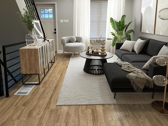Welcome Home to this fully renovated 3 bedrooms 2 bathrooms in Southwest Philadelphia Area. As you enter the home, you'll be greeted by an open-layout living and dining room with luxury vinyl plank floors. A lot of natural light as well as recessed lighting throughout. This open concept home offers a modern kitchen quartz counter tops, and stainless steel appliances. The custom iron railings dress your stairs as you ascend to the second floor. The front bedroom has double closets with a ceiling fan. The bathroom has modern tile work, vanity, with efficient flush toilet. There are two additional bedrooms. This level also has an array of natural lighting as well as new windows. The finished basement features a washer and dryer hook-up, and a half bathroom. This space can be used for storage, or an additional living space. The basement door leads to a private fenced in backyard. The home also has a new roof, brand new windows, electric, plumbing, HVAC system, and electric water heater. Don't miss out on the opportunity to make this home yours!