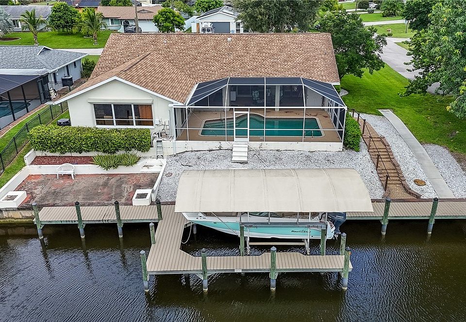 Welcome to this 3-bedroom, 3-bath direct Gulf access waterfront home in the highly desirable SE Cape Coral. Boaters will love the no-bridge sailboat access to open water. This 2,379-square-foot home features a brand new dock with an 8,000 lb covered lift, two concrete dock areas, and an updated Trex wrap-around dock for endless waterfront enjoyment.