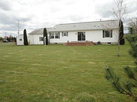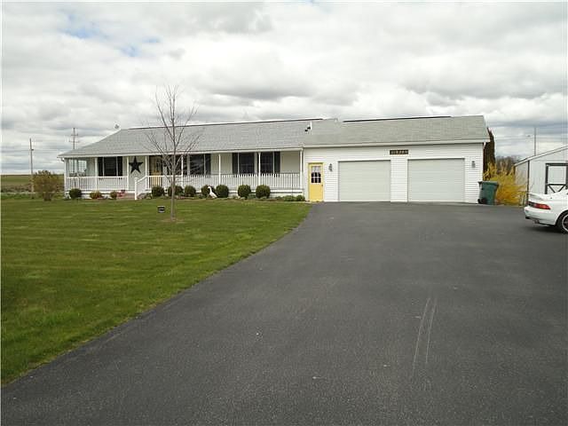 Three bedroom 2 Bath ranch with 2 car attached garage on 1.64 Acre lot on the outskirts of Penn Yan. Living and Dining rooms have cathedral ceilings. ceiling fans in LR & MBR ,central vacuum system, 7' x 50' front porch and 10 x 17 deck off dining room Two built in corner china closets in DR.Full Basement (1300 sq ft) could be finished for add'l living space. Public water and TW cable all circuit breakers, all copper plumbing,all drains are PVC, sky tube, laminate floors, new roof