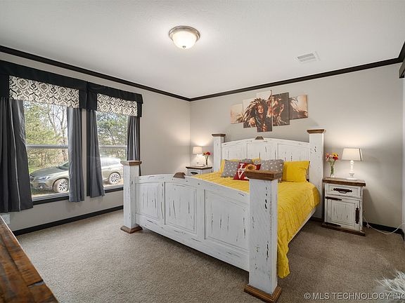 Come and Enjoy this adorable 2021 mobile sitting on 9.9 acres +/-. 4 large bedrooms, 2 large bathrooms, eat in kitchen with oversized kitchen island with bar! Living room with built in granite entertainment center with storage, laundry room with large pantry. Wi-fi thermostat, newer washer and dryer as well as kitchen appliance stay with property.