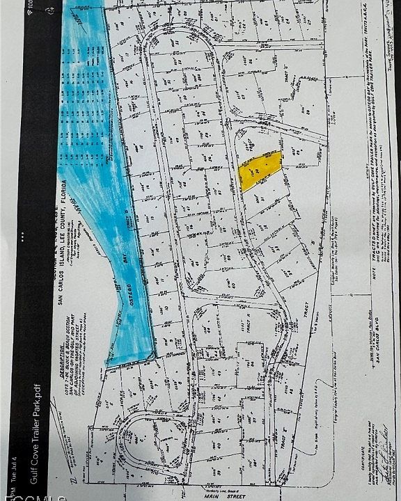 Waterfront Park at the foot of the bridge of Ft Myers Beach. You can't get closer to the beach without being on the beach! Walk over the bridge and you are on Ft Myers Beach! Margaritaville and other restaurants within walking distance. Gulf Cove is a Co-op property which means you own 1/60th of the park! It is a waterfront community docks. The Board of Directors is working on a process for the boat slips assignments and fees. Low HOA fees-Only $750. @ quarter. This is a 55 + park. No pets are allowed unless they are emotional support or service and have the proper paperwork available. The park has been cleared and new survey done. Sewer, Water, and Electric has been completed. You are allowed to have RV's on your property as long as they are kept highway ready! New mobile homes will need to be built to FEMA height standards 8-10 feet above ground. Gulf Cove is zoned MH-2 which means mobile homes or Park Models. Come see the location and pick your spot! Low fees! The new seawall has been completed and it has been raised several feet from where it was to give more protection.