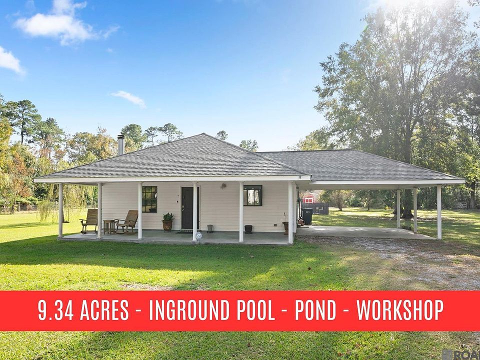 Welcome home to this beautiful 3-bedroom, 2-bath property with an additional office space — the perfect blend of comfort, functionality, and peaceful country living. Situated on 9.34 serene acres, this home offers everything you need to relax, entertain, and enjoy the outdoors. Step outside and take in the views of your private, stocked pond or unwind by the sparkling in-ground pool, complete with a new pool liner installed in 2024 (with a 20-year warranty) and a new pool pump in 2023. The pool area is fully fenced for peace of mind, and there are two covered patios providing ideal spots for morning coffee or evening gatherings. A 10x16 workshop offers plenty of space for hobbies, storage, or projects. Inside, you’ll find fresh interior paint throughout and an inviting open-concept kitchen and living area, perfect for entertaining friends and family. The home also features a generator plug for easy backup power when needed. Tucked away in its own private setting, this property delivers the peace and privacy you’ve been looking for — all while being just a short drive from town conveniences. Come experience the serenity, space, and charm of true country living. This property is clean, well-maintained, and ready for its new owners to enjoy!