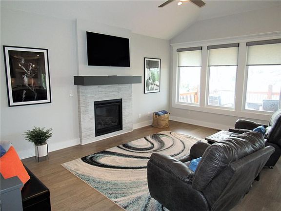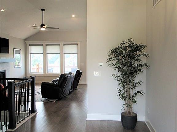 WONDERFUL REVERSE 1.5 STORY HOME IN OLATHE KS WITH 4 BEDROOMS, 3 FULL BATHROOMS, 3 CAR GARAGE, 2,500+ FINISHED SQUARE FEET, FINISHED WALKOUT LOWER LEVEL, COVERED DECK, CUL-DE-SAC STREET AND IN THE AWARD WINNING OLATHE SCHOOL DISTRICT! Located in the Fallbrook community, this is a nearly brand new home and move-in condition. An open plan featuring ranch style living with a main level great room, kitchen, breakfast room, master bedroom, desk/office area, second main level bedroom and laundry room. Flowing hardwoods at the entry, great room, kitchen, breakfast room and desk/office area. Great room has a gas fireplace, wall of windows, vaulted ceiling and ceiling fan. Kitchen has an 8' island with bar stool area, quartz countertops, walk-in pantry and tall upper cabinets with glass doors. Stainless appliances including gas stove, dishwasher, microwave and refrigerator stays. Breakfast room has a wall of windows and door out to 15x12 covered deck. Main level master bedroom has a vaulted ceiling, ceiling fan and large walk-in closet. Master bathroom has a large walk-in shower and double vanities. Finished walk-out lower level with family room, two additional bedrooms and a full bathroom. Upgraded LVP flooring at LL family room. Neutral decor and modern finishes throughout. Upgraded plumbing and lighting fixtures. Main level laundry room with a mud room off garage. 12' main level ceilings and knock down ceilings. Upgraded stair carpeting and all window treatments stay. Great curb appeal with a stucco and stone front elevation. Covered deck, large patio, lawn sprinkler system and a meticulously maintained lawn. Composition roof, corner lot and beautiful metal fenced back yard. Washer, dryer and refrigerator stay. Basement storage with storm shelter area. 3 car garage with openers. 2,500+ finished sq/ft per Johnson County KS tax records. Quick access to K-10, K-7, I-435 and I-35 highways in Johnson County Kansas. Award winning Olathe School District and ONW high school area.
