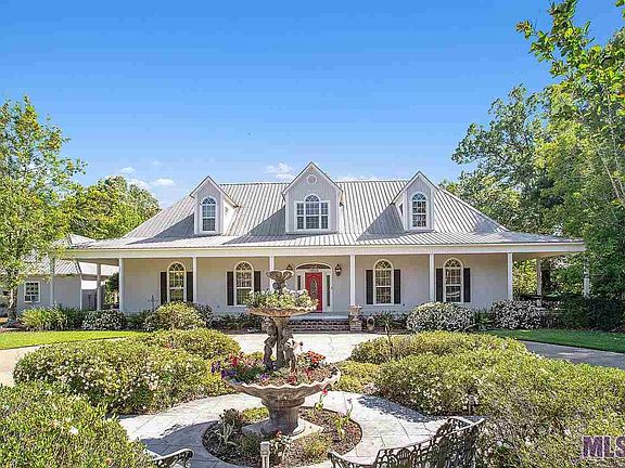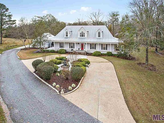 EXCEPTIONAL, UNIQUE, SERENE, AND CONVENIENT describes this beautiful South Baton Rouge custom-built home sitting on 18.72 acres off Hoo Shoo Too Road. This is an opportunity to experience peace, tranquility, nature, and privacy, but still have the convenience of Baton Rouge living. Also, a place for your horses! Entering the property, nestled behind trees, you drive down a peaceful winding driveway, well constructed for driving, any size vehicle, and extra parking. There are landscaping plants that flower for every season, circle drive, flower garden, and fountain area compliment the entrance to the home. Walking up the brick steps, you notice the beautiful beveled glass door, wide wrap around porch (Timber Tech), Hardi Plank siding (extremely low maintenance) , 30 windows, five (5) access doors, and heavy-duty metal roof. Entering the home, you have a nice foyer open to the Great Room, separate formal dining room, with 10' Ft. ceilings, crown molding, fireplace/separate sitting area open to the kitchen, slab granite on separate bar/serving area, large island, you can sit and enjoy watching the Cook, custom cabinets with pull-out draws, custom pantry, double gas range oven, built-in refrigerator and appliance utility closet. Breakfast area as a built-in window seat overlooking outside, guest powder room and oversize laundry/sewing room. Large master bedroom suite, with a gas fireplace, master bath, jetted tub, separate vanities, two separate closets, and a linen closet. Downstairs you have solid wood in the dining, great room, piano/office, and ceramic tile(slate) in kitchen, laundry, & powder rooms. The solid wood stairway leads to a landing with built-in shelves. Great for reading or a computer/play area for children. Bedroom connected to a large bath and extra-large room that can be an office or bedroom that has a custom Murphy bed and built-in shelves. There is a future game room/storage area 13 x 28 not finished out