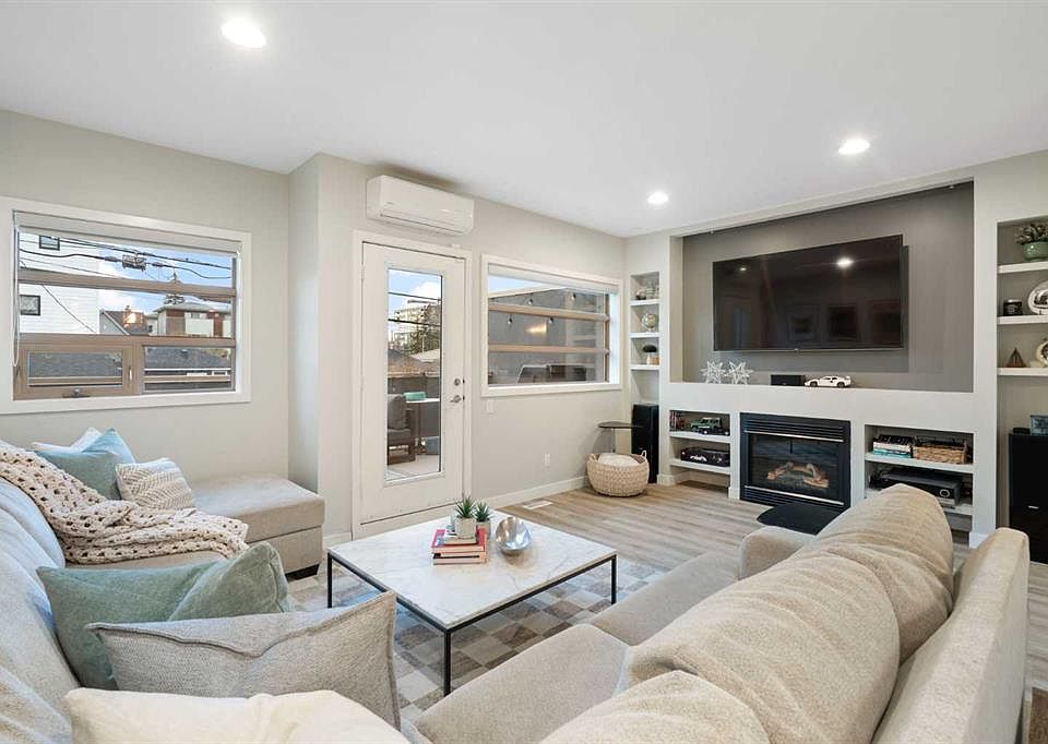 Luxury living just minutes from downtown Calgary! Tucked away in a beloved inner-city neighbourhood with tree-lined streets and plenty of green spaces, Killarney offers the perfect blend of urban convenience and neighbourhood charm. Step inside through your heated, attached garage into a versatile mudroom, home office, or fitness area - the ideal flex space to suit your lifestyle. Upstairs, the main level welcomes you with a bright and open layout that’s perfect for entertaining. With only one shared wall, natural light floods through the east, south, and west-facing windows, creating a warm and inviting atmosphere. The modern kitchen showcases stainless steel appliances, a stylish glass bar wall, and plenty of counter space for cooking or hosting, including a sit-up breakfast bar. The dining area can comfortably seat up to ten, while the living room is the perfect spot to unwind. Complete with a cozy gas fireplace, elegant built-ins, and in-ceiling speakers - an ideal setting to enjoy movie nights or the big game. On the top floor, you’ll find two spacious bedrooms, each with their own ensuite bathroom. The primary suite is a true retreat, featuring a large walk-in closet, separate tub and steam shower. The conveniently located laundry room on this level includes a new washer and dryer. Additional features include newer flooring throughout, air conditioning, and recent upgrades to the roof, balconies and siding. Outside your door, enjoy a 10-minute walk to Shaganappi Golf Course, a 12-minute stroll to Westbrook LRT, and quick access to Crowchild Trail and Bow Trail for easy commuting. You’re also just steps from an off-leash dog park, and only three blocks from the Killarney Aquatic & Recreation Centre, complete with park space and basketball courts. This home perfectly captures the essence of inner-city living combining modern comfort, thoughtful design, and an unbeatable Killarney location.
