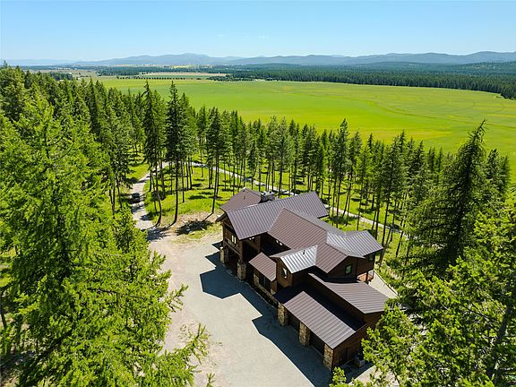 Serenity, Privacy and Security - Discover unparalleled luxury in this 6,000+ sqft haven on 14 private acres encircled by State Forest. Minutes from Downtown Whitefish, the Whitefish Mountain Ski Resort and Glacier National Park, this 6-bedroom, 5-bathroom masterpiece boasts 30' vaulted ceilings, a large deck with exquisite mountain views, a custom stone fireplace, hardwood oak floors and bespoke cabinetry. Modern comforts include a whole-home backup generator, redundant heating sources (heat pump, wood stove, gas), air conditioning, gym and Starlink internet. The 2,400 sq ft pole barn and terrace, overlooking 2 acres enclosed with 6'6†game fencing will suit livestock, equestrian or hobbyist needs. With walk-in access to Spencer Mountain biking trails, this is Montana living at its finest—spacious, elegant and adventure-ready.