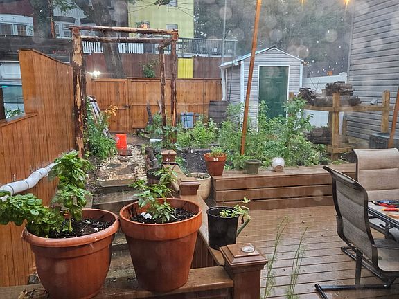The star of the home is the large back deck and backyard with vegetable garden. The backyard also includes a shed that fits 3 bikes and a large parking spot.