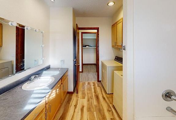 1929 N 11st St #5 - $1200 | $1200 Deposit - Welcome to your 2 bedroom 1 bathroom condo in North Bismarck! Walk through the front door and kick off your shoes in the large storage/coat closet. Right off of the entrance of this home you will find a bright and open kitchen featuring gorgeous hardwood flooring that's carried out throughout the home. The kitchen features a large horseshoe shaped countertop making it perfect for the inner chef in you! The dining room features a large daylight window, hosting that dinner party you've been wanting will be a breeze! Through the dining area you will find yourself in the oversized living room area. This space has large windows letting in a plethora of sunlight for optimal lighting! Laundry day can become your favorite day! A washer and dryer can be found in the bathroom of this home. The bathroom features an over sized counter top and tons of cabinet drawers! Relax in your large master bedroom that features a large walk in closet! Closet space wasn't forgotten about with the second bedroom either! There is a 1 stall garage for this home! Resident is responsible for electric. This community is animal friendly under 25bs! Residents with pets will be required to place a $300 pet fee and will be assessed $30 monthly pet rent. Residents are responsible for electricity. 1 MONTH IS $100.00 WITH A 7 MONTH LEASE NOT FIRST OR LAST ; 1 MONTH FREE WITH A 13 MONTH LEASE Contact us to schedule a showing.
