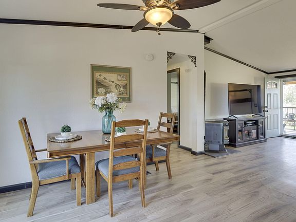 This charming single-level home with stunning views of Smith Rock sits on 2.42 acres with 2.0 acres of irrigation. The 1,320 sq ft residence features 3 bedrooms, 2 bathrooms, and thoughtful room separation. Inside, you'll find laminate floors, solid wood doors, granite tile countertops, and oak cabinets throughout. Step outside onto the spacious deck, perfect for outdoor entertaining. The fully fenced yard includes raised garden beds and a pond. The property also includes RV parking with electrical hookups, a loafing shed, hay storage, multiple storage sheds, and a finished he-shed/she-shed. An oversized two-car garage with attic storage provides extra space. The property is equipped with a 3-party well and had a new septic system installed in 2015. Ideal for those seeking a quiet retreat with space to relax, garden, and enjoy the beauty of nature.