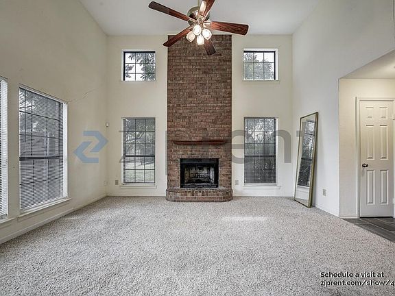 Great location! vaulted ceiling and an updated Kitchen & master bathroom. This beautiful corner home features abundant windows that fill the interior with morning sunlight. Excellent location- within two minutes walking distance to two Starbucks stores, Dunkin Donuts, Fuzzy Tacos, Papa John's Pizza, Subway, KFC, McDonald's, JP Morgan, Bank of America, CVS Pharmacy, Sprouts Farmers Market, Tom Thumb, Walmart, Kroger's, 7/11 Gas Station, Wendy's, Panda Express. Close to many corporate companies like Toyota Headquarters, NTT Data, Bank of America & JP Morgan. This charming residence boasts a classic brick facade complemented by lush greenery, creating a welcoming curb appeal. Step inside to discover a spacious living area featuring a high ceiling and a striking brick fireplace, perfect for cozy evenings. Large windows flood the space with natural light, highlighting the neutral tones and providing a warm, inviting atmosphere. The adjacent dining area is ideal for entertaining, seamlessly connected to a modern kitchen equipped with sleek granite countertops, rich cabinetry, and contemporary appliances.