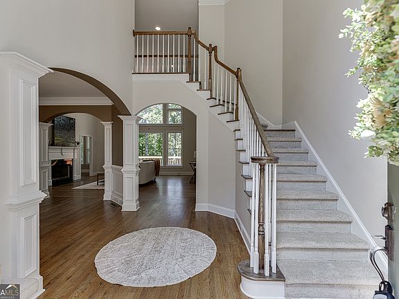 Welcome to this beautifully appointed 2-story home featuring a brick front, full finished basement, and serene wooded backdrop. Inside, hardwood flooring flows throughout the main level and upstairs hallway, complemented by brand-new carpet in the bedrooms. The gourmet kitchen is a chef's dream with granite countertops, stainless steel appliances, a custom-designed island, and a walk-in pantry with a custom shelving system. A keeping room with a two-sided fireplace seamlessly connects to the inviting family room, creating the perfect setting for gatherings. The oversized primary suite is conveniently located on the main level and offers a fireside sitting area-ideal for an office or quiet retreat. The updated spa-like primary bath showcases dual vanities and an enlarged, custom-tiled shower. Upstairs, one secondary bedroom features a private ensuite with hallway access, while two additional bedrooms share a Jack-and-Jill bath, each with separate sink vanities. The terrace level is partially finished and designed for entertaining, complete with a custom kitchenette/bar, ensuite bedroom with a sitting room, and an extended patio overlooking the wooded lot. The unfinished section of the lower level offers ample storage space and workshop area. Additional highlights include a newer Lennox A/C unit on the main level, an active neighborhood association, and a prime location near the Chattahoochee River trails, schools, shopping, and dining. This home effortlessly combines luxury, comfort, and convenience-don't miss the chance to make it yours!