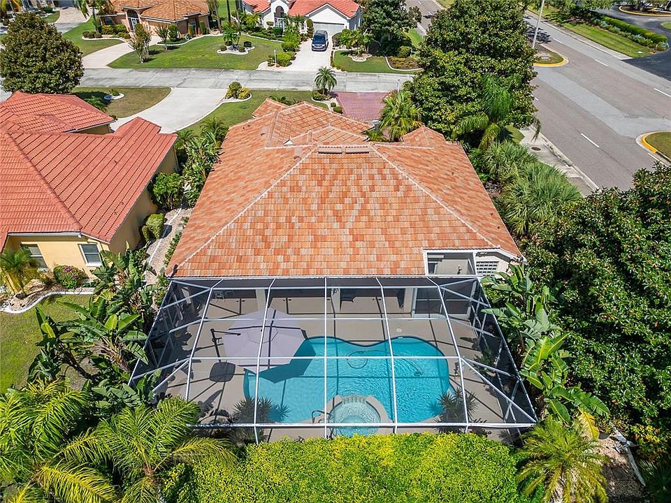 Welcome to this stunning 3 bedroom, 2 full bath, 55+ ACTIVE lifestyle home in the heart of Sun City Center, where every day feels like a vacation. This home is perfect for those seeking comfort, luxury, and a vibrant social community, just 45 minutes from Florida's famous sugar-sand beaches. Move-In Ready: All the major updates have already been completed, so you can focus on living! A NEW roof was installed in 2022, a NEW AC compressor and UV light in 2024, ensuring energy efficiency and comfort. Luxury Interior Upgrades: Granite countertops and plantation shutters create a polished feel throughout the home. NEW LVP flooring in the bedrooms (2021), and slate tile in the bathroom.Pocket door for guest suit provides privacy for your visitors.Screened-In Pool & Hot Tub: Enjoy your own private oasis with a NEW saltwater pool conversion (2024), NEW pool tile (2024), NEW pool heater (2022), and NEW pool pump (2023). Relax in the hot tub or take a dip in the pool, all surrounded by lush landscaping.Outdoor Pool Shower for added convenience.New Appliances (2020): Updated kitchen with modern appliances makes cooking a pleasure.Reverse Osmosis Filter System (2021) and New Water Softener (May 2023) ensure pure, clean water throughout the home.New Epoxy Garage Flooring (2023) adds durability and a sleek finish to the oversized garage.Featuring hurricane shutters, half of which are electric, providing added peace of mind during Florida’s stormy season.Worry-Free Maintenance: The ASSOCIATION covers all lawn care, irrigation, cable, and internet, so you can spend more time enjoying life and less time worrying about upkeep. The only maintenance you’ll handle is for the shrubs around the back pool enclosure.Located in a golf cart-friendly neighborhood, you’ll have easy access to nearby CLUBS, SOCIAL events, and recreational ACTIVITIES that make Sun City Center such a special place to live.Why Wait? With all these improvements, schedule your private tour today and start enjoying your best life!