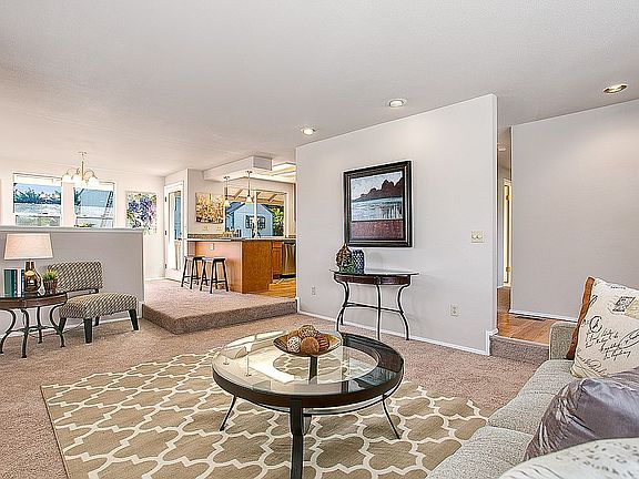 Beautiful 3 bdrm, 2 bath one level ranch-style home in the desirable Alderbrook neighborhood. Recently updated, including quartz counters, soft-closing cabinets & stainless steel appliances in the KIT w/a brand new dishwasher. Both baths offer quartz counters & soft-closing cabinets. Large master enjoys a full bath, walk-in closet & access to the partially covered deck & fully fenced backyard. Enjoy morning coffee in the DR w/views of Mt Rainer or from the fully covered front porch or back deck. LR features a fpl w/blower for those chilly winter evenings. Convenient laundry room off KIT w/full size washer/dryer included. Park in the large fully finished 2-CG w/new garage door opener. The home has a mostly level yard on .14 acre lot.
