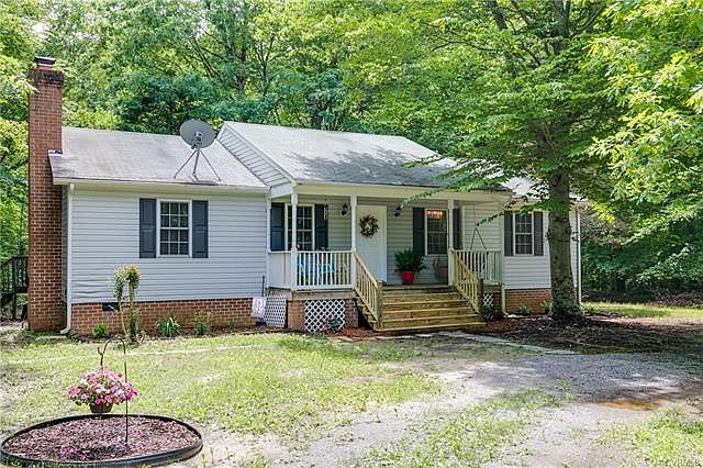 Louisa living at its best! A quick drive from Richmond and you will feel like you are in a different world. Tucked off of the main road behind another property you will truly feel like you are in the country. Sited on just over 4 Acres this single level ranch style home is ready for its new owners. The current owner has refreshed this home since purchasing with NEW Heat pump, NEW water tank, NEW carpet & paint throughout, NEW dishwasher and stove. The front porch welcomes with wide steps and plenty of room for sitting on the porch swing. Inside the main living room is large with space for plenty of seating near the fireplace. The Dining Area is the perfect spot for gatherings. Kitchen is equipped with good cabinet and counter space + pantry closet. A utility Room is great for laundry and "mudroom" access for those days in the yard. The Master Bedroom is nicely sized with closet and ensuite full bathroom. Two additional bedrooms each with nice light and closet space share a full hall bath. Closets plus hatch attic are perfect for storage. Vinyl windows and siding make maintenance easy. Direct TV for cable and Century Link or Hughes for internet. Come take a look!