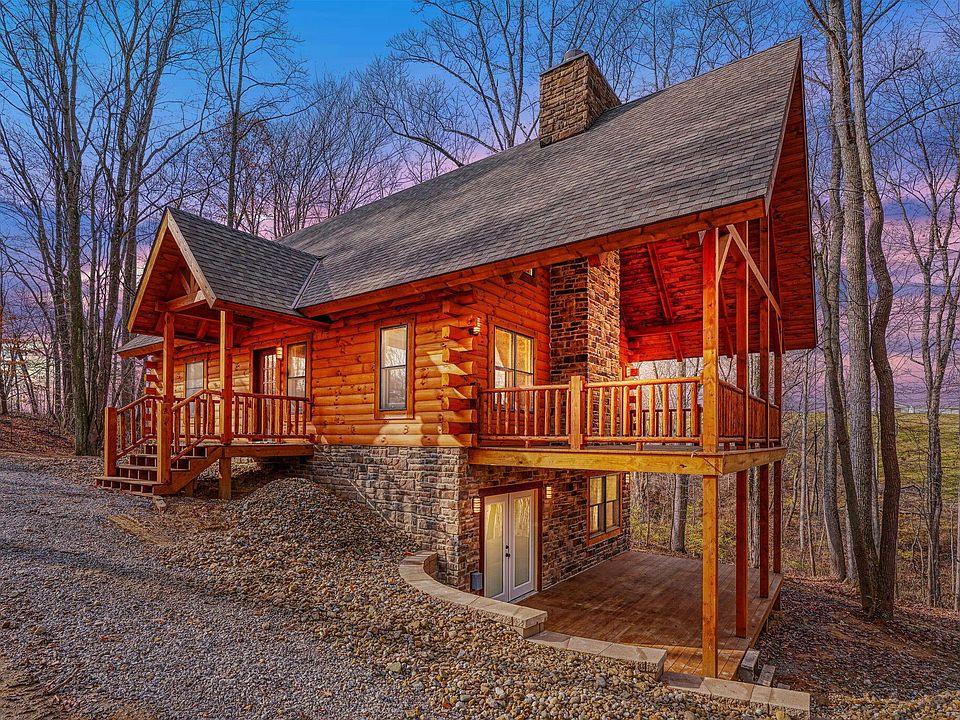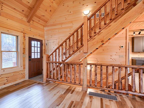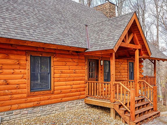 New Hochstetler log home, just over 1 mile from Old Man's Cave. 3BR/2BA , great room, kitchen with stainless/granite, stone wood burning fireplace, finished walkout lower level. Stone wrapped exterior and covered upper and lower level decks. Open loft for additional sleeping. Property is gated for added privacy. This is a must see and excellent location for a Hocking Hills vacation home or vacation rental opportunity. New construction, property tax TBD. Hot tub and furnishings can convey.