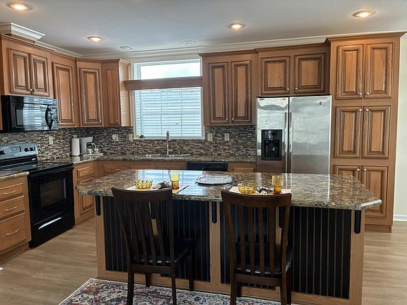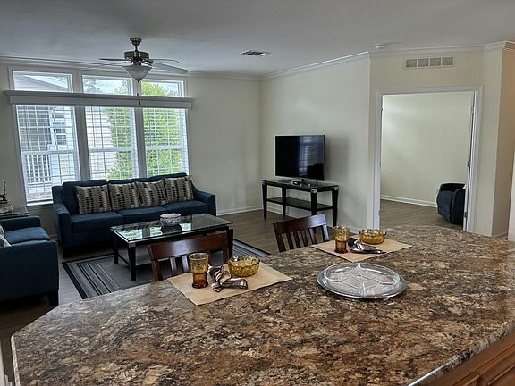 Priced to sell! Don't miss this unique, fully furnished 2 bed + den, 2015 Skyline home in Tara Woods' sought-after Phase 3. With 1680 sq. ft., 2x6 walls, extra insulation, a double garage, and large carport, it offers both quality and space. The immaculate open concept layout is ideal for entertaining. This massive kitchen is fully stocked and has abundant cabinet storage. You can seat 4+ guests at the gigantic island bar. This one of a kind home is located on a large interior lot which carries the lowest community fees in phase 3. Beautiful luxury laminate floors. Golf cart included.