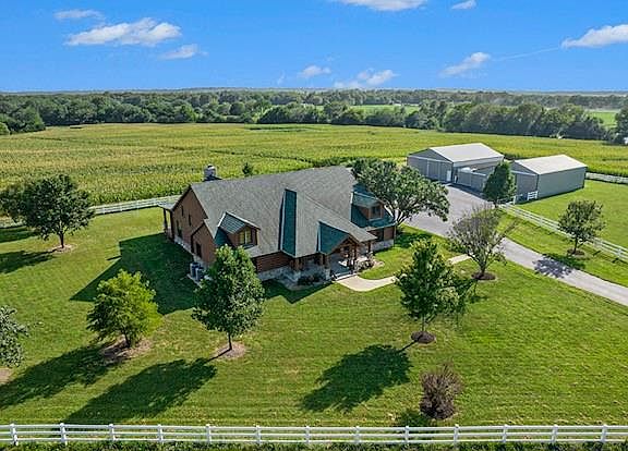 Discover the charm of rustic living at 19295 Highway 52 in Pleasanton, KS. This beautiful log cabin-style home is set on a picturesque 15-acre parcel, offering a perfect blend of natural beauty and modern comfort. The residence features 4 bedrooms and 3 bathrooms, spread over 3,149 square feet of living space, each corner thoughtfully designed with natural wood details and expansive windows that fill the home with light.