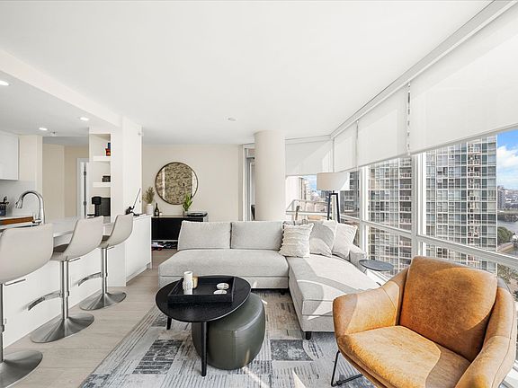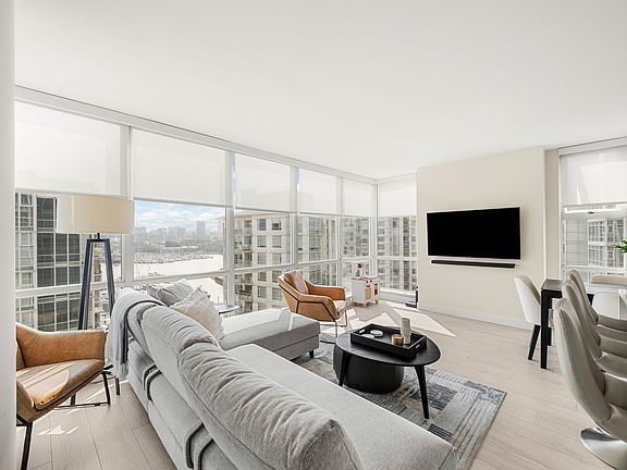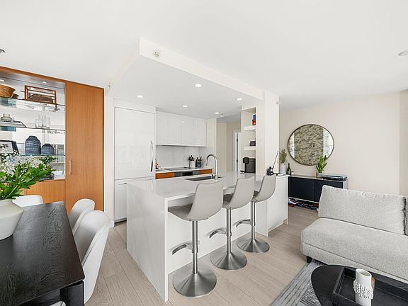 New flooringModern kitchenQuartz countertopsStainless steel appliancesBright open-concept layoutSoaring ceilingsFloor-to-ceiling windows
