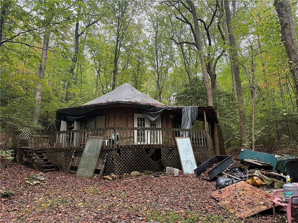 ASSEMBLAGE OF 3 Parcels = 10.4 acres to be sold AS IS WHERE IS. The property is tucked away at the end of a narrow, rutted dirt road, flanked by towering oaks and tangled underbrush. The land sprawls unevenly over several acres—untamed and wild—with patches of knee-high grass, long since abandoned. Rusted fencing borders the property, sagging between leaning posts, barely holding back time and decay. At its heart stands the old octagon house—a once-proud structure now surrendering to the elements. The wood siding is gray and splintered, warped from decades of weather and neglect. Shingles are missing from the roof, leaving jagged gaps where rainwater seeps through. Windows are either broken or boarded up, creaking when the wind stirs. A collapsed porch leans forward like it's bowing to the earth, its steps overtaken by moss and creeping ivy. Out back, a large shed teeters on the edge of ruin, its paint faded, its doors wide open like a mouth in mid-sigh. There's the faint scent of damp wood, and soil—mixed with the sharp tang of rust from long-forgotten tools and vehicles scattered nearby. The silence is deep, broken only by the occasional rustle of wildlife or the distant call of a crow. It’s a place forgotten by time, raw and honest in its disrepair, with a quiet kind of beauty that only ruin can offer. House in need of serious work! Foundation appears to be concrete block construction. Gated access to driveway leads back to home, large shed & hidden treasures. The driveway is narrow with no room to turn around. PLEASE DO NOT DRIVE BEYOND THE GATE ~ Trust me, you DO NOT WANT TO GET STUCK! To see the property you MUST provide a signed release provided by the listing agent . There is a sagging power line running along the edge of the driveway, so pease use extreme caution. Everything you see will be conveyed with sale of property. A real winner!!