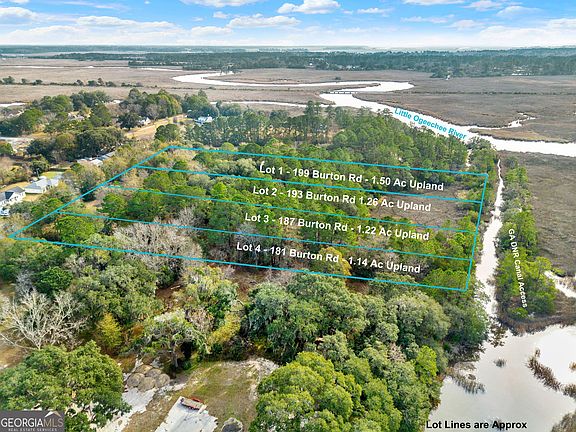 193 Burton Rd is Lot 2 of the 4 Lots For Sale on the Little Ogeechee River and has 1.26 Acres of Upland and holds so much Southern Beauty, it is indescribable. Four Lots Total For Sale - Each one backing up to the beautiful flowing Marshes of the 42 mile long Little Ogeechee River, a Tributary of the Ogeechee River in Savannah, GA. Hundred Year Old Oaks sit on each Lot creating a gorgeous Canopy over this Marsh Front Property and you will find Nature at its Best. Your Family can enjoy this heirloom type Land for Years and Years. The brackish Tidal Marsh is a tranquil nesting place to many, beautiful, migratory Water Birds and Wildlife. You will see and be able to enjoy several Bald Eagles, Red-Tailed Hawks, Blue Herons, Ducks and Owls. There is also a Family of Deer on the Property that enjoy the Marsh, as well. Call for your Private Tour. Front Portion X-500 Flood Plain - No Flood Insurance Required on Build - County Taxes Only. Lot can be further subdivided by Minor Subdivision. Public Water Utility at Street.