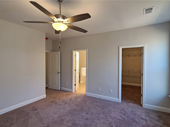 - Ceiling Fan(s), Dual Sinks, Granite Counters, Garden Tub/Roman Tub, High Ceilings, Bath in Primary Bedroom, Main Level Primary, Pull Down Attic Stairs, Smooth Ceilings, Solid Surface Counters, Separate Shower, Walk-In Closet(s)