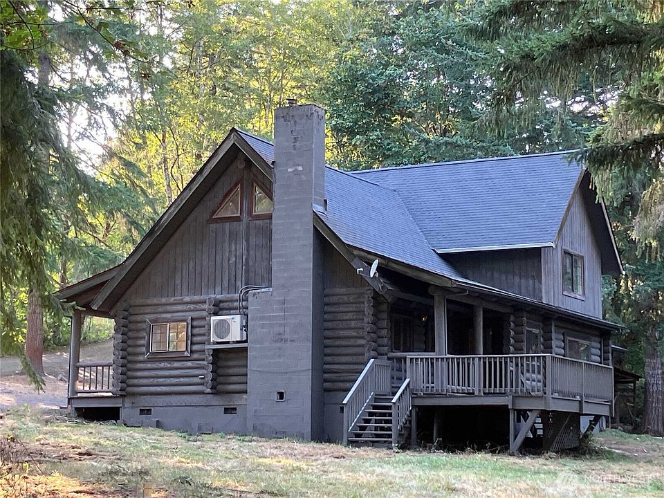 NOT YOUR TYPICAL OUTDATED LOG CABIN!! Refreshed throughout with tasteful updates and upgrades. Enterthrough double doors into the great room/kitchen with vaulted ceilings. Updated kitchen has soft close drawers/doors,quartz countertops, stainless steel appliances, and island with eating area. Off the kitchen is the great room with vaultedceilings, Daikin ductless mini split, and pellet stove. Primary bedroom/bathroom are on the main level. Upper levelincludes three bedrooms, full bathroom, plus a loft. Large back deck is partially covered and perfect for entertaining. Alarge portion of the 4.9 acre lot is relatively flat. Don't miss out on a one of a kind gem!