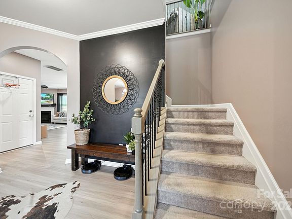 Come tour this well maintained 4 bedroom home with a well laid out functional floor plan! Upon entry notice the beautiful arch ways and crown molding, leading into the formal dining room, featuring wainscoting. The living room and kitchen are open concept featuring vinyl plank flooring, a gas fireplace, eat in dining area, and kitchen has granite countertops, stainless steel appliances including gas stove, a corner pantry, and island. Upstairs find a loft that can be used as a second living room or flex space. A spacious primary suite including a tiled shower, double vanity, and large walk in closet. There are also three additional bedrooms and bathroom and a spacious laundry room. Outside enjoy the beautiful fenced in backyard with an extended concrete patio and fire-pit. Enjoy the peaceful wooded views from the backyard. Neighborhood features a club house, community pool, playground, and walking trails. Great proximity to Lake Norman, public boat access, and Lake Norman State Park.